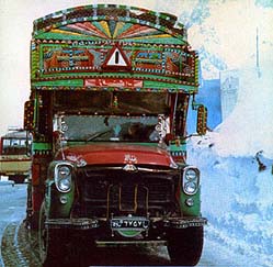 Знаменитая "бурубухайка" - грузовик, разукрашенный и разрисованный, обитый резными планками, в общем, "полный компресс". Afghan lorry - the real work of art.