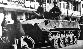 Кабул. Декабрь 1979. Экипаж БМД-1 на дежурстве. BMD-1 of the Soviet Airborne Forces was part of the December, 1979 invasion force in Kabul.