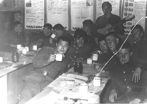 День рождения, 19 лет. Cлева направо: Славик Марычев, Юрик Ярков и я - Бордюг Андрей. Ребята, вы где? Отзовитесь! Celebrating border guard' 19th birthday
