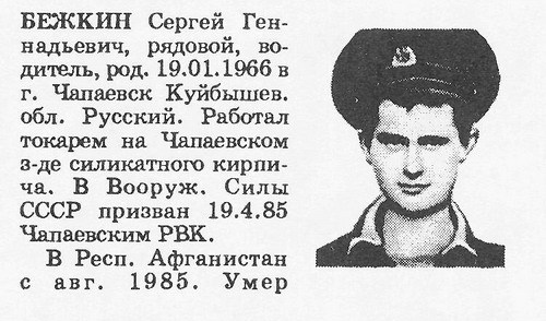 рядовой Жмакин Сергей Викторович 10.10.1966,м.р.Курская обл., Курчатовский р-н, пос. Карла Либкнехта,Русский,Работал на сахарном заводе им. Карла Либкнехта электросварщиком.механик-водитель САО,Погиб при исполнении служебных обязанностей 10.10.1985.Респ. Афганистан.В вооруженные силы СССР призван 02.10.1984 Курчатовским ОГВК. В Респ. Афганистан с 02.1985. Неоднократно принимал участие в боевых операциях и рейдах, где показал себя храбрым и решительным воином. награды: Орден Красной Звезды (посмертно) захоронен:РФ, Курская обл., Курчатовский р-н, пос. Карла Либкнехта |