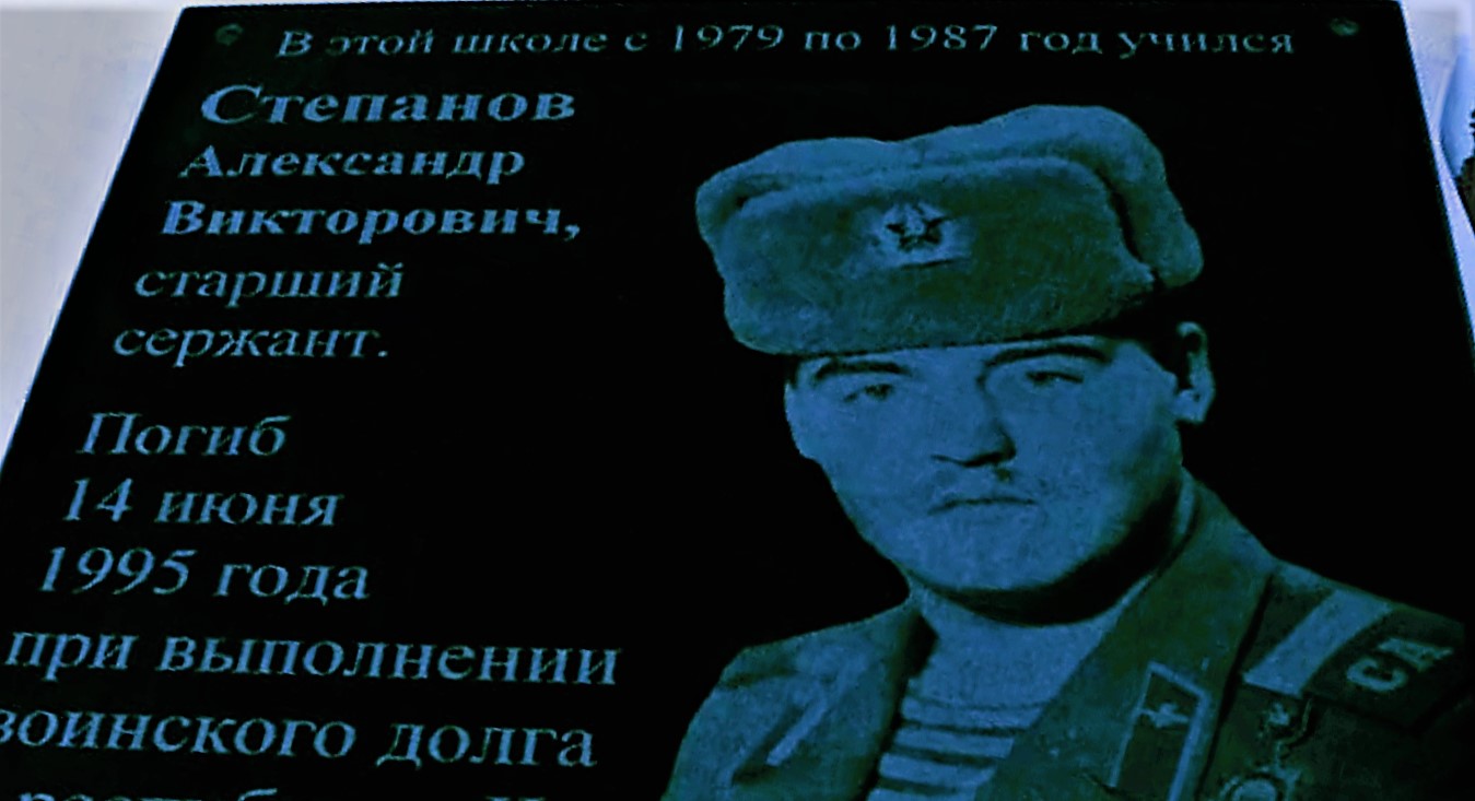 Вот эти данные и фото были взяты с адреса http://cheshens.blogspot.com/2018/10/14-1995.html : Степанов Александр Викторович.ОМОН на транспорте в г. Новосибирске в Чечне. 14 июня 1995 года от полученных ран скончался С фотографии смотрят глаза молодого красивого юноши в военной форме. Не по возрасту проницательный и суровый взгляд. Ему 22 года, но, как говорят, - на войне ребята взрослеют быстрее. Это выпускник Лотошанской школы, Степанов Александр Викторович. Он вырос в обычной семье: отец Виктор Иванович работал шофером в совхозе, а мама Галина Григорьевна - осеменатором. Как и все деревенские мальчишки, - в меру озорной, очень подвижный, весёлый. У него была младшая сестрёнка Алёна, которую он любил и всегда оберегал. Учился Александр в школе хорошо, был способным учеником. Как рассказывают учителя, любимым предметом у Саши была физическая культура. Он увлекался спортом: любил играть в футбол, волейбол, кататься на лыжах. Всё ему было под силу. По характеру Саша был заводилой, очень общительным, что притягивало к нему сверстников. Но от своих сверстников, Саша отличался обостренным чувством справедливости. Как вспоминают его одноклассники, он всегда приходил на помощь тому, кому она была нужна. Он никогда не прятался за спины товарищей, таким он был в школе, таким остался до последних дней своей жизни. После окончания 8 класса Александр поступил в Лобинское СПТУ – 80, где получил среднее образование и профессию механизатора. Вернулся в родное село Лотошное, работал в совхозе. Как и все мальчишки, он мечтал хоть немного быть героем. И эти мечты у Саши были связаны со службой в армии. В 1990 году его призвали в ряды Советской армии. Прощаясь с родителями и друзьями, говорил: «Не беспокойтесь, не подведу». Служба проходила в городе Тула, в ВДВ, чем он очень гордился. Саша окончил курсы командиров БМД и получил звание младшего сержанта. Он мог водить любую машину ВДВ, был инструктором по рукопашному бою, снайпером, 11 раз прыгал с парашютом, обучал молодых солдат. За время службы был в разных странах: Афганистане, Никарагуа. Когда объявили отбор десантников в батальон миротворческих сил ООН для службы в Югославии, Александр выдержал огромный конкурс. «Конкурс, как в престижный вуз: 8 человек на место». Так о нем писал корреспондент журнала «Советский воин». Саша пробыл в Югославии 6 месяцев и был награжден медалью ООН «Во имя мира». В 1992 году демобилизовался, вернулся домой. А потом после недолгих раздумий решил связать свою жизнь с охраной правопорядка и пошел служить в бригаду ОМОНа на транспорте в г. Новосибирске, там же окончил школу милиции. За службу был награжден знаком «Отличник милиции». Когда начались военные действия в Чечне, Саша вместе с товарищами был направлен в командировку в «горячую точку». И таких командировок было несколько. Очередная, и последняя командировка, была 14 июня 1995 года, из которой Александр Степанов не вернулся. В ночь с 8 на 9 июня 1995 года в ходе боевого столкновения был тяжело ранен. 14 июня 1995 года от полученных ран скончался в госпитале г. Владикавказа. Похоронили Сашу в родном селе. Эта была трагедия не только для родных, но и для каждого односельчанина. Все село прощалось с Сашей. Собственной семьей старший сержант так и не успел обзавестись. В далеком Дагестане стоит памятник воинам, погибшим в этой локальной войне. На нем высечено имя нашего 