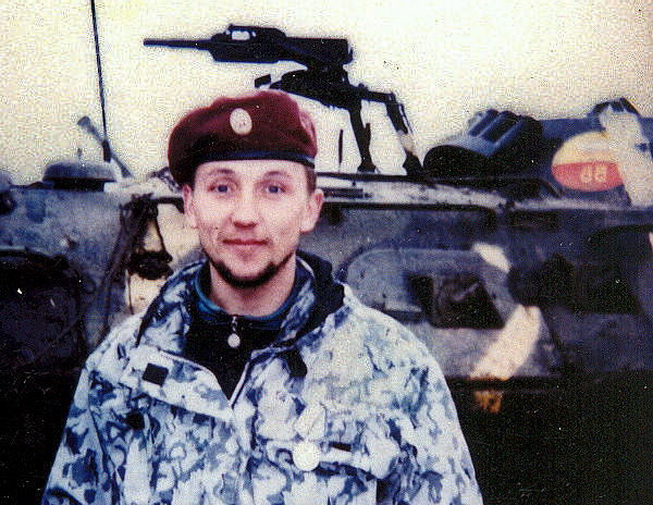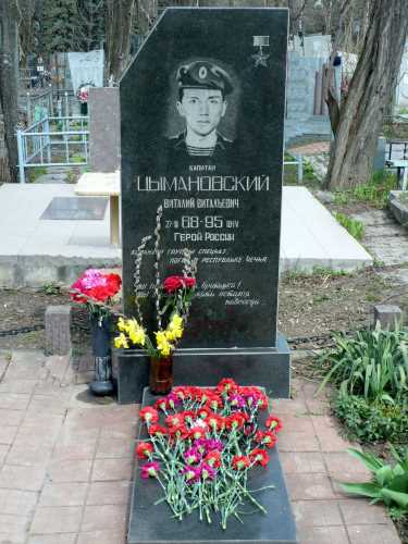 Вот эти данные и фото были взяты с адреса https://www.warchechnya.ru/tsymanovskij-vitalij-vitalevich : Цымановский Виталий Витальевич 27.03.1968 – 18.04.1995 18 апреля 1995 года проводилась специальная операция по блокированию и уничтожению базового лагеря незаконных вооруженных формирований юго-восточнее н.п. Бамут. Отряду специального назначения «Росич» была поставлена задача выдвинуться на южный склон горы Лысая и не допустить прорыва боевиков к населенному пункту. В 8.30 по указанию руководителя операции три группы спецназовцев начали выдвижение к блокированному району. В 9.30 в 100 метрах от южной окраины горы Лысая, на установленном боевиками фугасе подорвался БТР, 1-я группа специального назначения попала под кинжальный огонь боевиков. Был подорван передовой бронетранспортер разведдозора. Трое военнослужащих получили ранения, командир группы погиб. В это же время 2-я группа спецназовцев, проводящая осмотр брошенных строений, подверглась плотному обстрелу из стрелкового оружия и гранатометов. Командир группы также погиб. Цымановский Виталий Витальевич Капитан В.Цымановский, возглавлявший 3-ю группу специального назначения и следовавший в замыкании, оценил опасную обстановку и понимая, что подвергает себя смертельной опасности, не теряя времени выдвинулся для оказания помощи передовым группам и вызволения их из огневого мешка. Боевики всячески пытались помешать спецназовцам, рвущимся на помощь товарищам. Тем не менее капитану В.Цымановскому вместе с подчиненными удалось прорвать боевые порядки бандитов и соединиться с передовыми группами. Интенсивность огня боевиков по огневым позициям спецназовцев нарастала. Приняв командование всех групп на себя, отважный офицер организовал оборону и принял решение на прорыв из окружения. При смене огневой позиции Цымановский получил ранение в грудь. С трудом превозмогая боль, мужественный офицер тем не менее продолжал схватку с противником. Он лично уничтожил пулеметный расчет и четверых боевиков, один из которых оказался полевым командиром сепаратистов. При очередной смене позиции жизнь мужественного и самоотверженного офицера оборвал выстрел вражеского снайпера. Фото с сослуживцами Капитан В.Цымановский ценой собственной жизни дал возможность группе спецназа выйти из окружения, не допустил большого количества потерь среди личного состава и до конца остался верен своему воинскому долгу. Указом Президента Российской Федерации от 15 сентября 2003 года за мужество и героизм, проявленные при исполнении воинского долга в Северо-Кавказском регионе, капитану Цымановскому Виталию Витальевичу присвоено звание Героя Российской Федерации (посмертно). Картина того кровавого боя на горе Лысая воссоздавалась по рассказам его участников. Каждый из них непременно называл капитана Цымановского как основного, самого толкового, самого “матёрого”, самого рассудительного, самого хладнокровного и отважного офицера, который ценою собственной жизни не позволил бандитам одержать победу над горсткой спецназовцев… Именно в тот день капитан Цымановский сыграл свою далеко не последнюю роль в своём последнем бою. Долгих восемь лет ждали однополчане, чтобы в это созвездие Героев по праву вошёл и капитан Виталий Цымановский. Цымановский Виталий ВитальевичВыплакали все слёзы его мать и жена, выроc сын, уж которое поколение