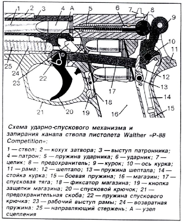 Работа механизма аналогична работе механизма пистолета «Walther